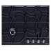 Газова варильна поверхня, колір чорний, матеріал - емальований метал, ширина 61 см, кількість газових конфорок - 4, електрозапалювання в ручках управління, газ-контроль, WOK конфорка, чавунні решітки, фронтальна панель управління, перехідник на балонний газ.