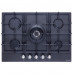 Газова варильна поверхня, колір чорний, матеріал - емальований метал, ширина 71см, кількість газових конфорок - 5, електрозапалювання в ручках управління, газ-контроль, WOK конфорка, чавунні решітки, фронтальна панель управління, перехідник на балонний газ.