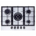 Газова варильна поверхня, колір нержавіюча сталь, матеріал - нержавіюча сталь, ширина 71см, кількість газових конфорок - 5, електрозапалювання в ручках управління, газ-контроль, WOK конфорка, чавунні решітки, фронтальна панель управління, перехідник на балонний газ.