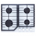 Варильна поверхня "газ на склі", колір біле скло, ширина 61 см, 4 газові конфорки, газ - контроль, електрозапалювання в ручках управління, чавунні решітки, металеві регулятори управління, фронтальна панель управління, перехідники (жиклери) на балонний газ