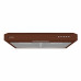Часть конструкции устройства, которая должна быть скрыта от глаз, монтируется под шкаф, а рабочая часть остается на виду и органически дополняет общий дизайн. Вытяжкаизготовлена из крашенного металла коричневого цвета. Этот материал, кроме визуальной привлекательности, очень легок в уходе и обладает высокой устойчивостью к внешним воздействиям.